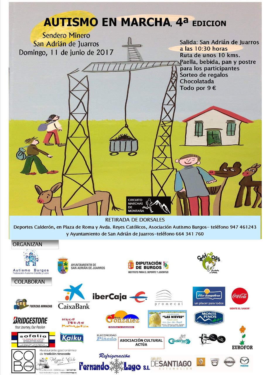 El domingo 11 de junio se celebra la 4º Edición de la Marcha organizada a favor de Autismo Burgos. Disfruta de un dia caminando al aire libre por el Sendero Minero y participa en los sorteos y la paellada que se celebrará en San Adrián de Juarros.