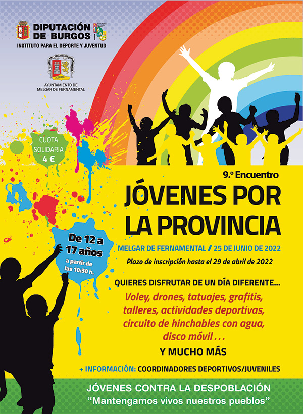 El Instituto Provincial para el Deporte y Juventud en colaboración con el Ayuntamiento de Melgar de Fernamental, organizan el 9º Encuentro de Jóvenes por la Provincia, con la intención de que se conozcan los jóvenes de diferentes localidades y que disfruten de una jornada lúdica. El lema de este año será "Jóvenes contra la despoblación. Mantengamos vivos nuestros pueblos".