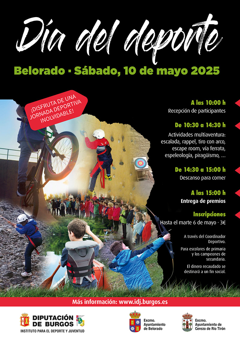El próximo sábado 10 de mayo, la localidad de Belorado será el escenario del "Día del Deporte Escolar", una jornada de convivencia y actividad física que reunirá a escolares de educación primaria y campeones de secundaria de municipios de la provincia de Burgos con menos de 20.000 habitantes.