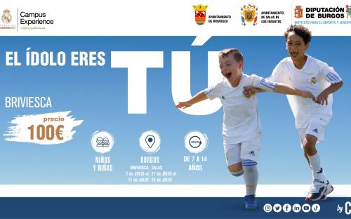 El Instituto Provincial para el Deporte y Juventud de la Diputación de Burgos, junto con el Ayuntamiento de Briviesca organizan una nueva edición del Campus de Fútbol “Experience” de la Fundación Real Madrid, una cita deportiva que cumple ya su decimoséptima edición y que vuelve a ofrecer a los más jóvenes una oportunidad única para disfrutar del fútbol, mejorar su técnica y compartir valores como el compañerismo, el esfuerzo y el respeto.