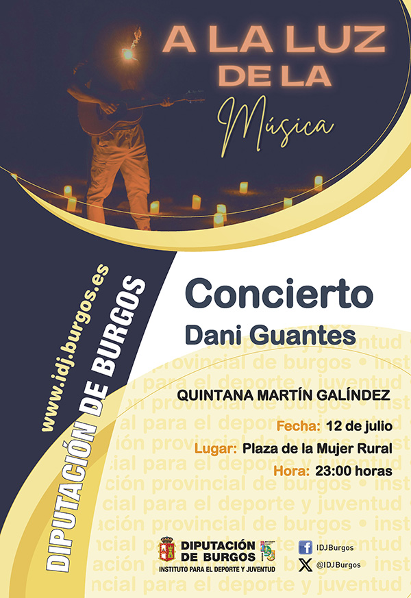 Daniel Guantes será el artista que actuará en la localidad de Quintana Martín Galíndez. Será el viernes 12 de julio a las 23:00 horas en la Plaza de la Mujer Rural.