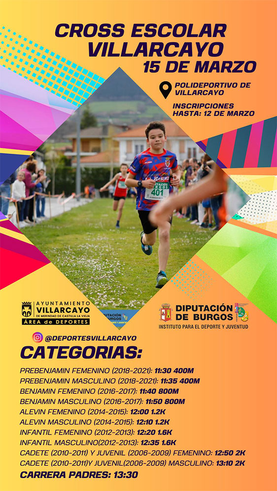 El Complejo Polideportivo Municipal de Villarcayo acogerá una jornada de cross escolar el sábado 15 de marzo a partir de las 11:30 horas, donde están llamados a participar los escolares de la provincia de Burgos en las categorías de prebenjamín, benjamín, alevín, infantil, cadete y juvenil.