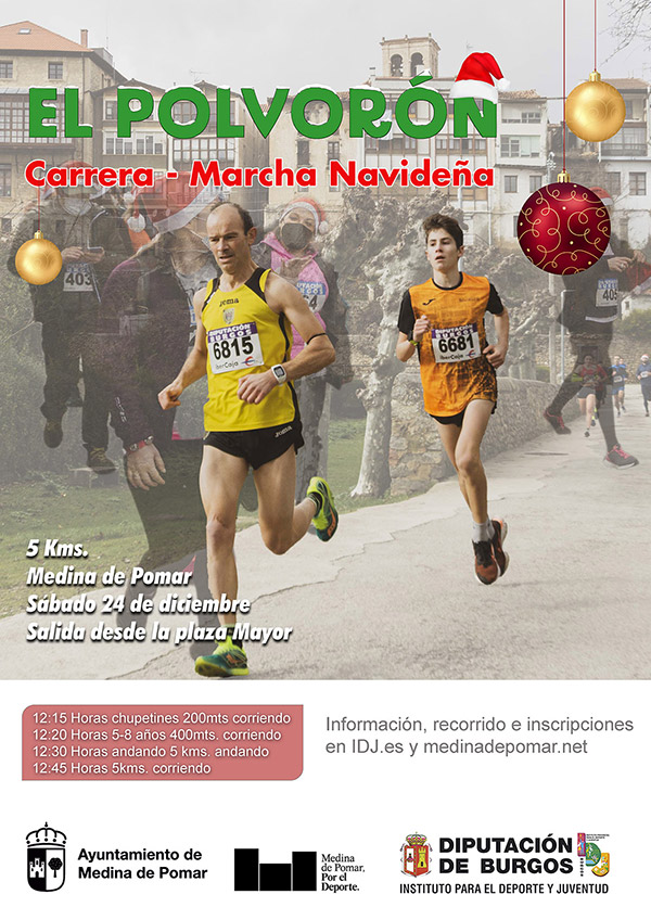 El Ayuntamiento de Medina de Pomar y el Instituto Provincial para el Deporte y Juventud de la Diputación de Burgos, en colaboración con el Club U. C. Medinesa y voluntarios medineses, organizan el día 24 de diciembre a partir de las 12:15 horas, el Cross/Marcha de Navidad "El Polvorón".