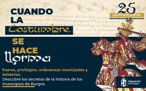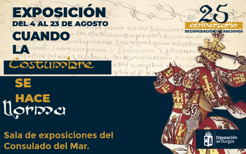 Con motivo de la celebración del 25 aniversario de la Sección de Recuperación de Archivos de la Diputación de Burgos, se ha organizado una muestra  de documentos en la sala de exposiciones del Consulado del Mar del paseo del  Espolón, con piezas relevantes pertenecientes a diversos archivos municipales de la provincia de Burgos.