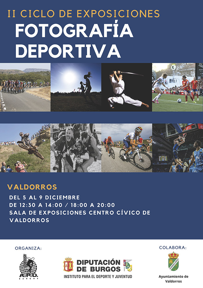 La Sala de Exposiciones del Centro Cívico de Valdorros acogerá la Exposición de Fotografía Deportiva que está organizada por la Asociación de la Prensa Deportiva de Burgos y el Instituto Provincial para el Deporte y Juventud de la Diputación de Burgos.