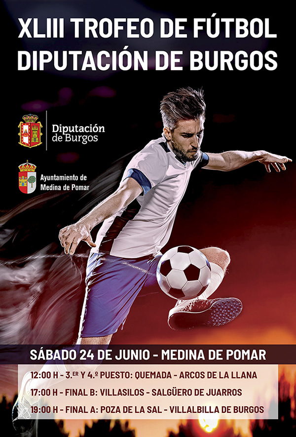 El Campo de Fútbol Municipal "Jesús María Pereda" de Medina de Pomar acogerá los partidos que pondrán fin a la XLIII edición del Trofeo de Fútbol "Diputación de Burgos" temporada 2022/2023.
