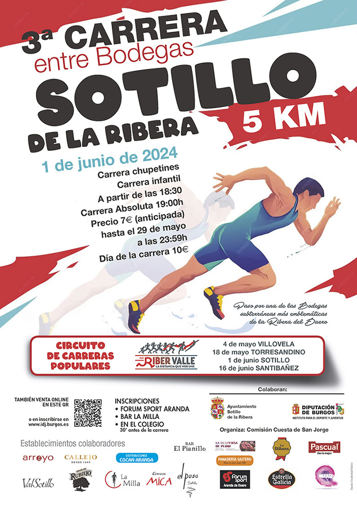 La Comisión "Cuesta de San Jorge" junto con la Asociación Cultural "El Soto" organizan el 1 de junio la III Carrera Entre Bodegas (carrera popular), con salida y meta en el Colegio Municipal de Sotillo de la Ribera, cuyo recorrido será de 5 kilómetros y transcurre, en una parte, por una bodega de la localidad.