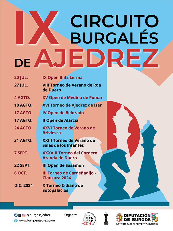 El III Torneo de Cardeñadijo, penúltima prueba del IX Circuito Provincial de Ajedrez, se celebrará el próximo domingo 6 de octubre a las 10:15 horas. Aunque no será puntuable para la clasificación final del Circuito, se celebrarán los siguientes torneos: