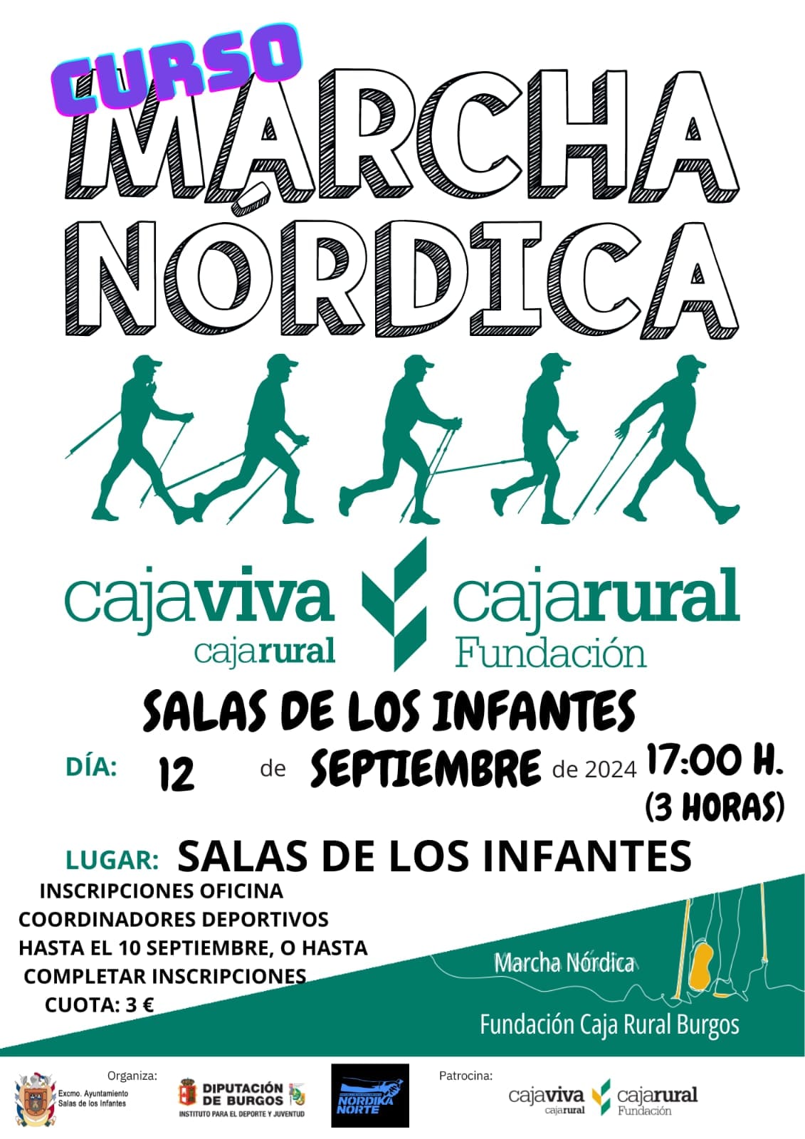 Cursos de Iniciación a la Marcha Nórdica patrocinados por Caja Viva - Caja Rural que tendrán una duración de 3 horas, donde se explicarán las rutinas y formas de trabajar con los bastones para andar de la manera adecuada, para posteriormente hacer un paseo dirigido de unos 6 km.