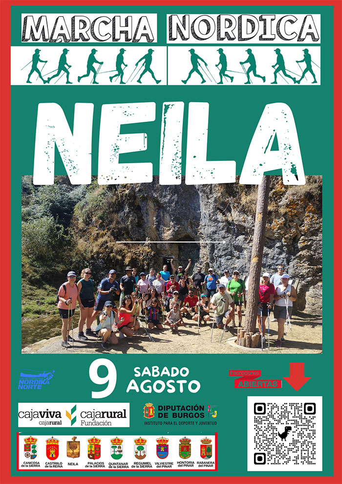 Cursos de Iniciación a la Marcha Nórdica patrocinados por Caja Viva - Caja Rural que se realizarán esta semana en Las Quintanillas el jueves 7 de agosto, en Neila el sábado 9 de agosto y en Castrillo de la Reina el domingo 10 de agosto. La actividad comenzará a las 10:00 horas. Tendrá una duración de 3 horas, donde se explicarán las rutinas y formas de trabajar con los bastones para andar de la manera adecuada, para posteriormente hacer un paseo dirigido de unos 6 km.