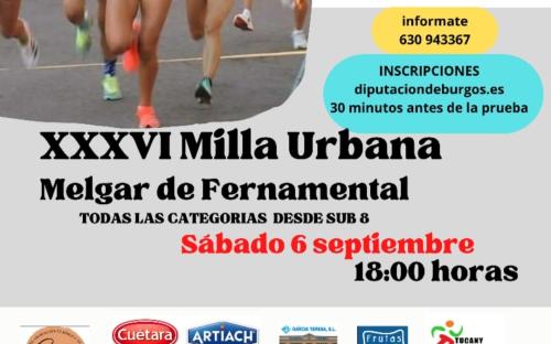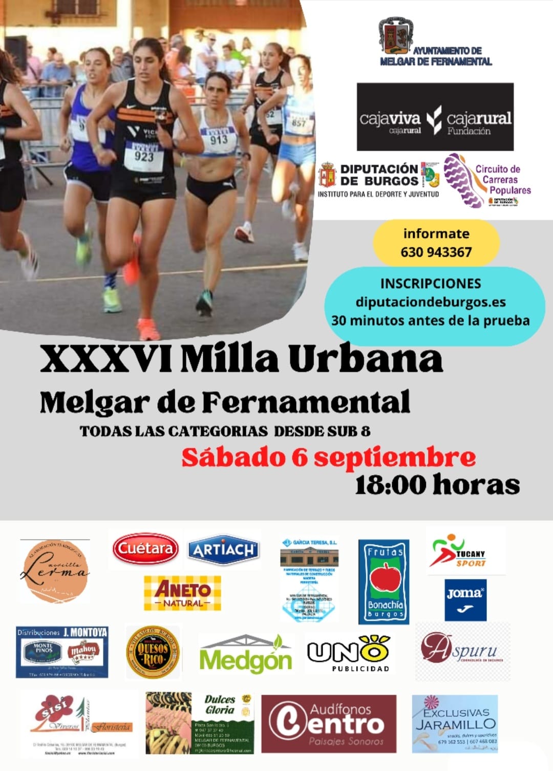 El sábado 6 de septiembre de 2025, Melgar de Fernamental acogerá la XXXVI Milla Urbana, quinta prueba puntuable del XLIV Circuito Provincial de Carreras Pedestres Populares “Diputación de Burgos”.