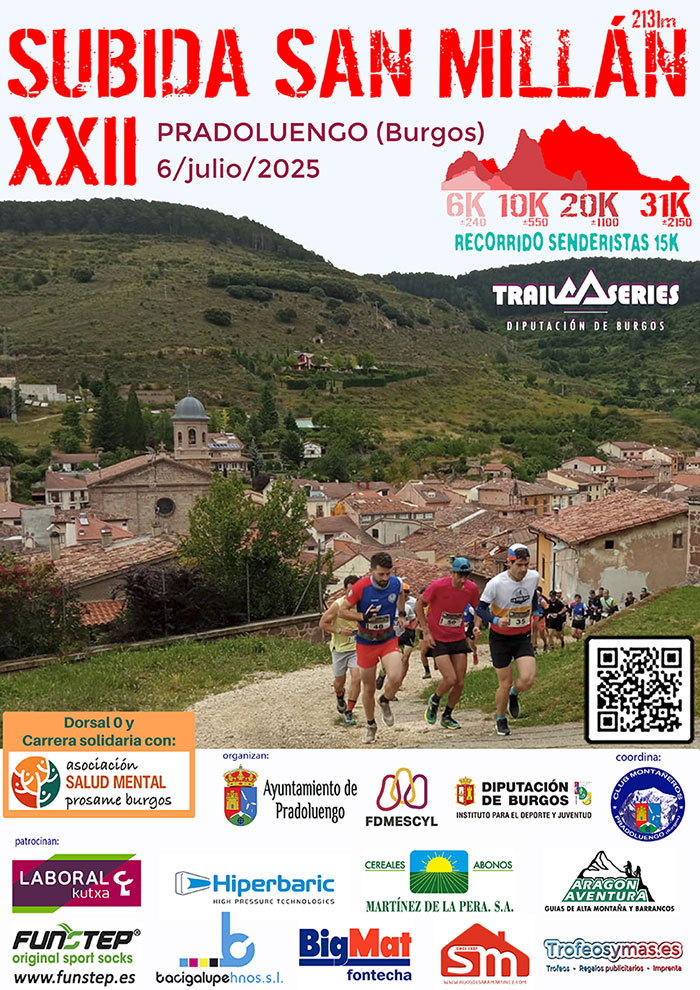 Pradoluengo se convierte este domingo, 6 de julio, en epicentro del trail running con la celebración de la XXII Subida al San Millán, una de las pruebas más emblemáticas del calendario regional. La carrera, organizada por el Club Montañeros de Pradoluengo, es la cuarta prueba puntuable de la III Copa Diputación de Burgos de Trail Series, dentro de las categorías absoluta, sénior y máster, y también forma parte de la XIX Copa de Castilla y León de Carreras en Línea.