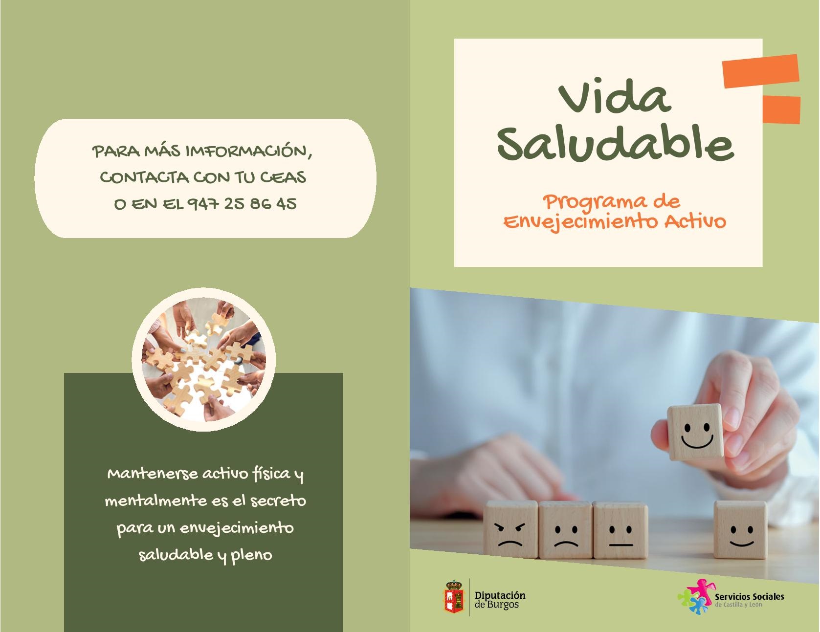 Desde los CEAS de la provincia de la Diputación de Burgos se ofrece el Programa de Vida Saludable que desarrolla en 85 localidades de la provincia. En este Programa se tratan temas relacionados con esta etapa de la vida  a nivel de salud física, mental y social: Hábitos para la salud física, estimulación cognitiva, salud emocional, hábitos para una vida autónoma, etc,…  Se trabaja en sesiones dinámicas y participativas que durarán en un calendario de primavera y otoño desde febrero hasta mayo y desde octubre hasta diciembre.