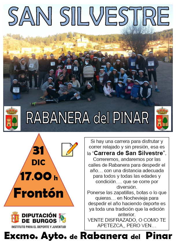 Si hay una carrera para disfrutar y correr relajado y sin presión, esa es la “Carrera de San Silvestre”. Correremos o andaremos por las calles de Rabanera para despedir el año, con una distancia adecuada para todos y todas las edades y condición. Se corre por diversión. Ponte las zapatillas, botas o lo que quieras en Nochevieja, para despedir el año haciendo deporte.