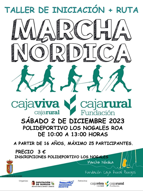 El Polideportivo "Los Nogales" de Roa de Duero acogerá un taller de iniciación a la marcha nórdica el próximo sábado 2 de diciembre de 2023, de 10:00 a 13:00 h. Constará de una parte teórica donde se explicará la técnica y el uso de bastones, para posteriormente realizar una ruta por los alrededores de la localidad.