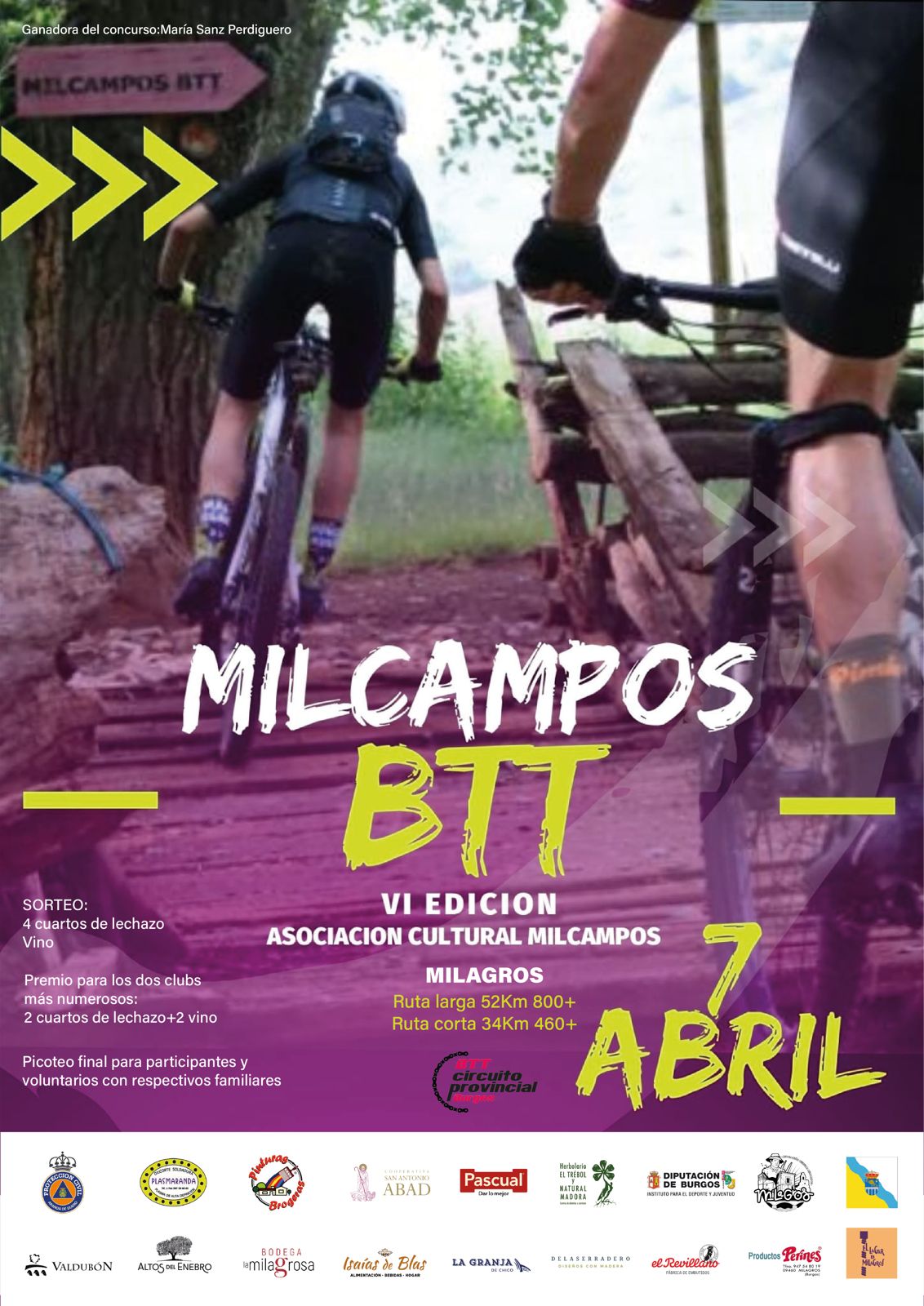 La Asociación Deportivo Cultural "Milcampos", junto con el Ayuntamiento de Milagros, organizan la VI BTT Milcampos para bicicleta de montaña, que tendrá lugar el domingo 7 de abril de 2024, con salida y llegada cronometrada en el Polideportivo Municipal "El Terrero".