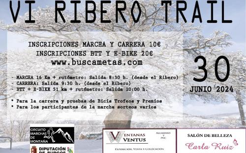 La VI Ribero Trail está organizada por Club de Montaña "Cueva Labrada" y se celebrará el domingo 30 de junio de 2024, en la localidad de El Ribero de Montija (Burgos). Forma parte del XIII Circuito Provincial de Marchas de Montaña.