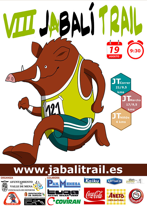 La Jabalí es apta para todos los públicos. Constará de una prueba de 9.5 Km. (Marcha y Trail) apta para cualquier corredor popular, una carrera de 21.097 Km. y una marcha de 9.5 y 17 Km. Todas ellas saldrán a la hora indicada, saliendo los participantes de la marcha 1‘ después de los corredores. La marcha txiki saldrá a las 9:35 h.