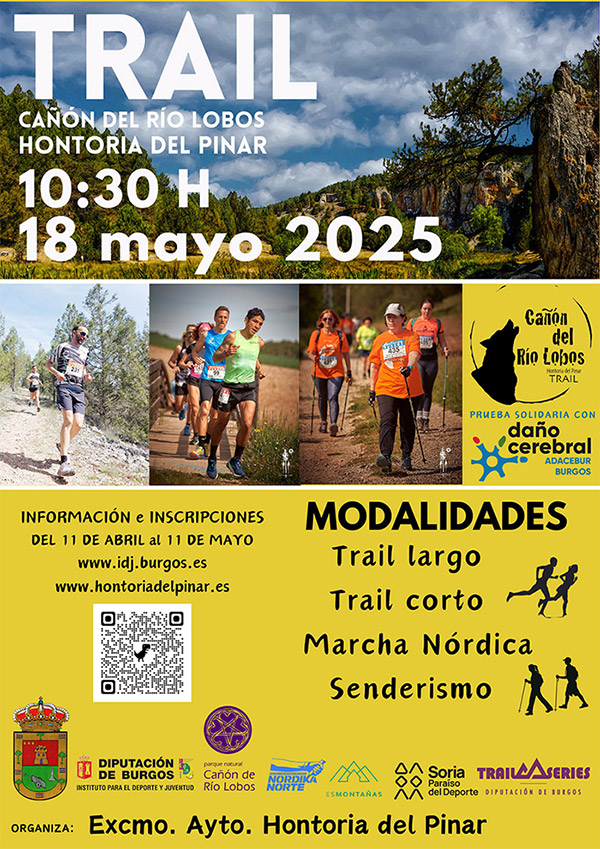 El próximo domingo 18 de mayo de 2025, el municipio burgalés de Hontoria del Pinar acogerá el XI Trail Cañón del Río Lobos - Hontoria del Pinar, un evento que une deporte, naturaleza y compromiso social en una de las zonas más espectaculares del Parque Natural del Cañón del Río Lobos. Además, es la tercera prueba puntuable de la II Copa Trail Series "Diputación de Burgos".