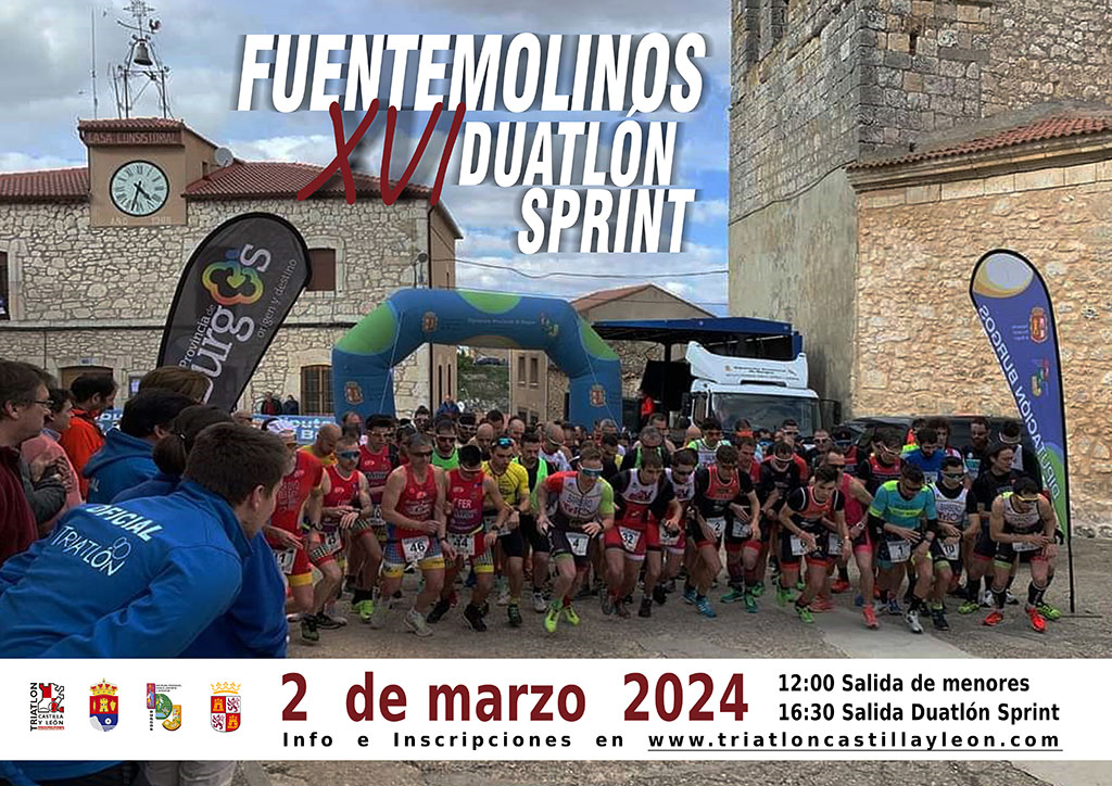 La localidad de Fuentemolinos acogerá su 16ª edición de su Duatlón-Sprint en el que participarán tanto menores como categoría absoluta. A las 12:00 horas será el turno de los más pequeños, desde prebenjamines a cadetes. Habrá trofeos y medallas a los tres primeros clasificados, además de obsequio para todos.