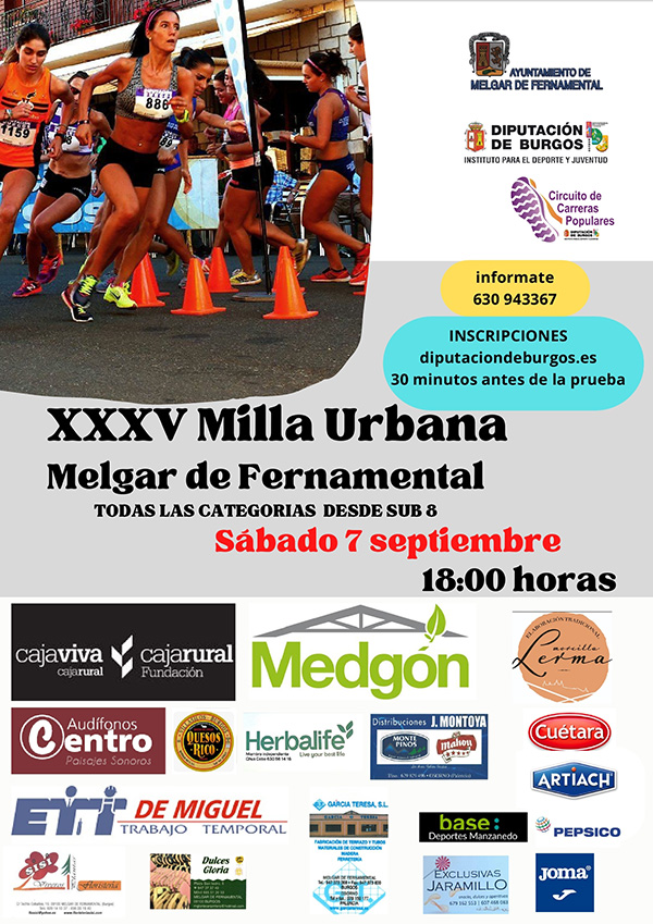 El próximo sábado 7 de septiembre, a partir de las 18:00 h, se llevará a cabo la cuarta prueba puntuable del XLIII Circuito Provincial de Carreras Pedestres Populares en Melgar de Fernamental con su Milla Urbana.