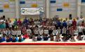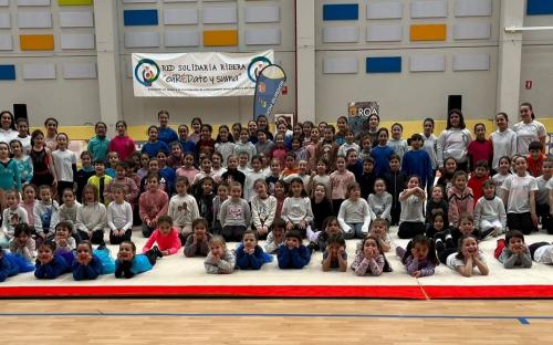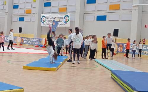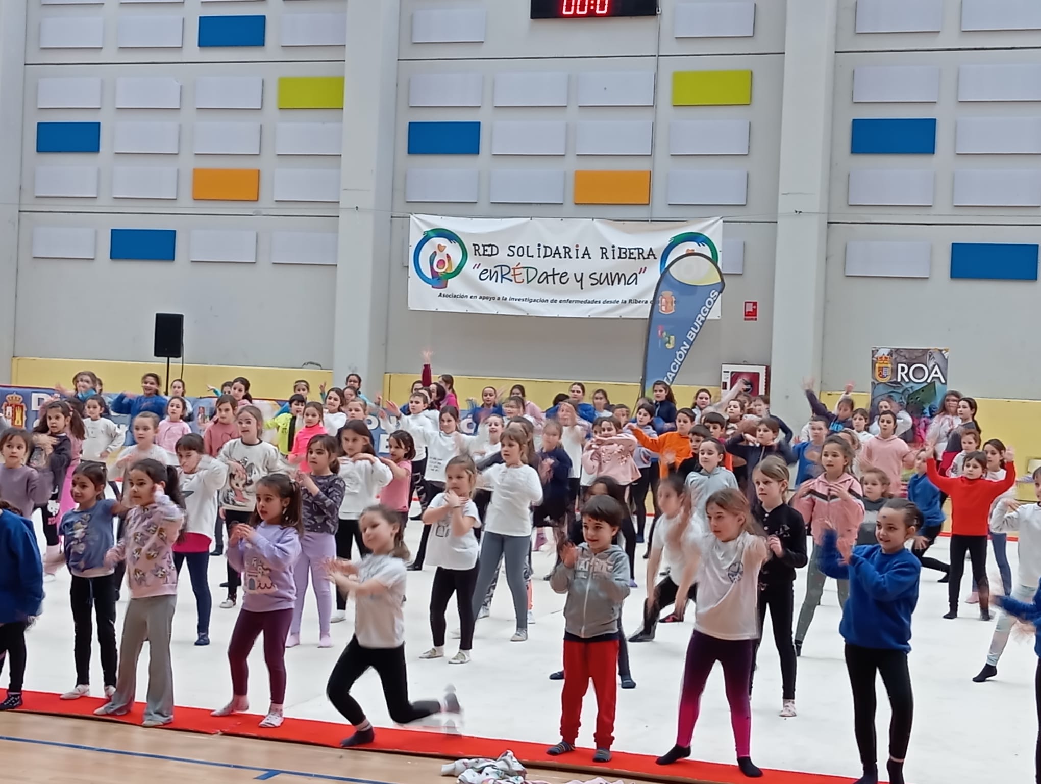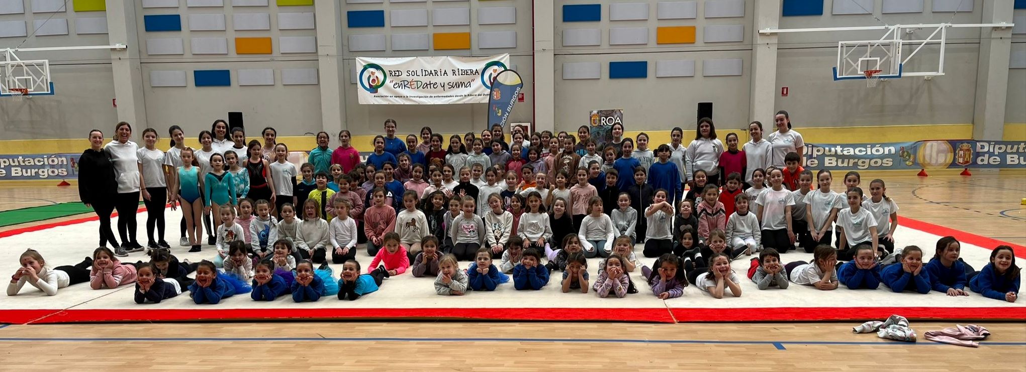 160 escolares de entre 4 y 14 años, pertenecientes a las localidades de Villarcayo, Salas de los Infantes, Quintanadueñas, Villadiego, Tardajos, Mancomunidad Sierra Pinares, Sotillo de la Ribera y Roa se reuniron en la localidad de Roa de Duero el pasado sábado 17 de febrero para poner en práctica sus habilidades en gimnasia rítmica.