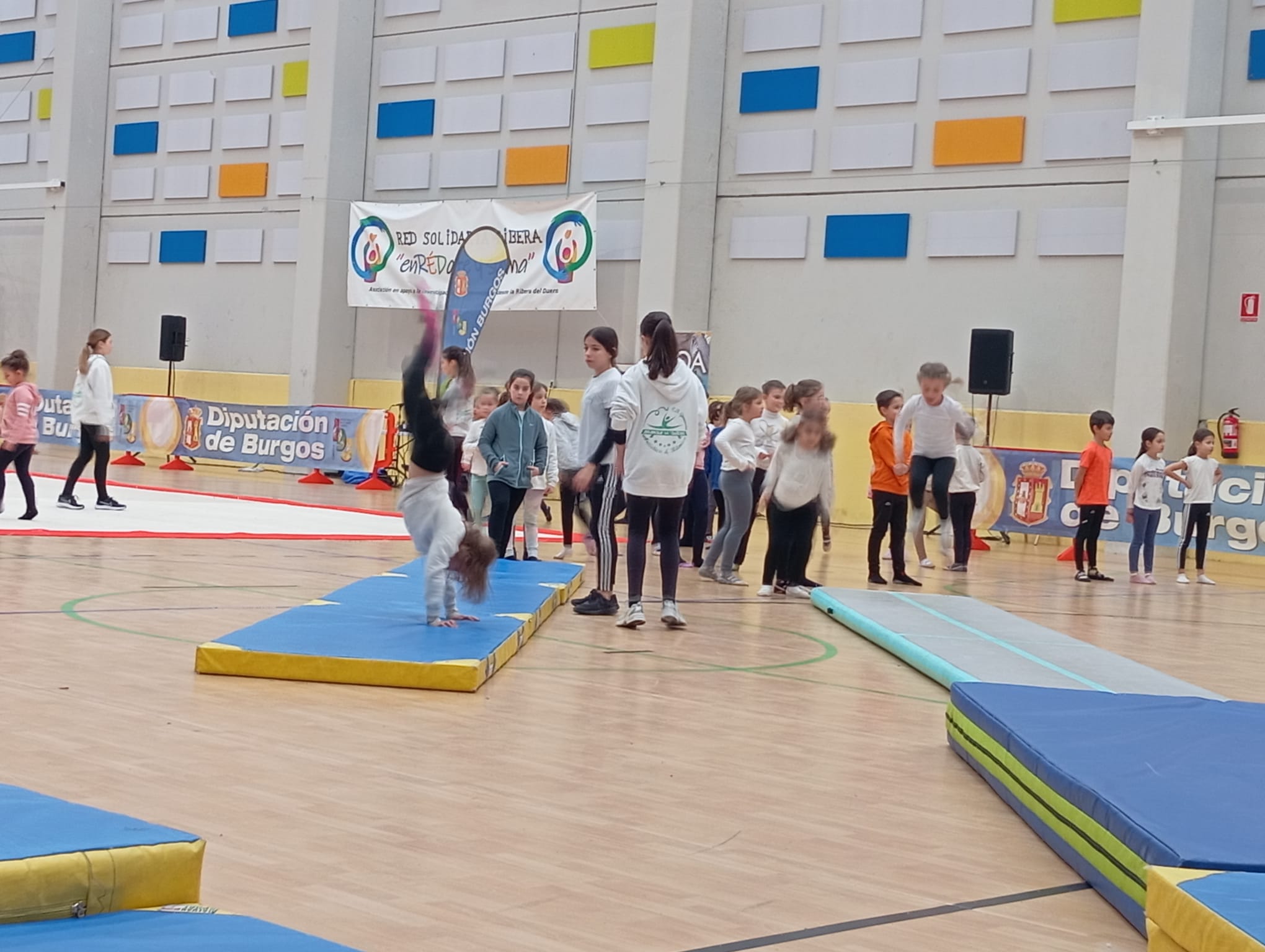 El Instituto Provincial para el Deporte y Juventud de Burgos, el Ayuntamiento de Roa y el Club Gimnasia Aranda organizaron una Jornada de Promoción de Gimnasia donde cerca de 160 niñas y niños disfrutaron de su deporte favorito gracias a un total de 13 postas con diferentes ejercicios como suelo gimnástico y acrobático, rítmica con pelotas, mazas, aros, barra de equilibrio, salto, asimétricas, telas acrobáticas, baile etc.