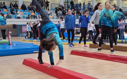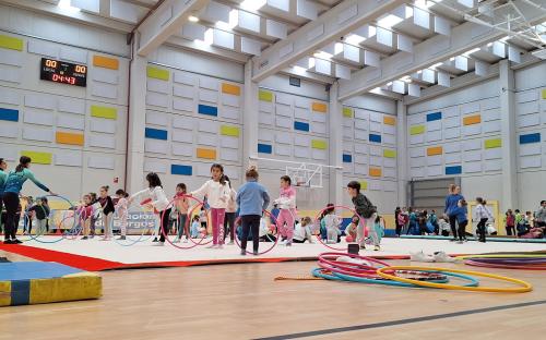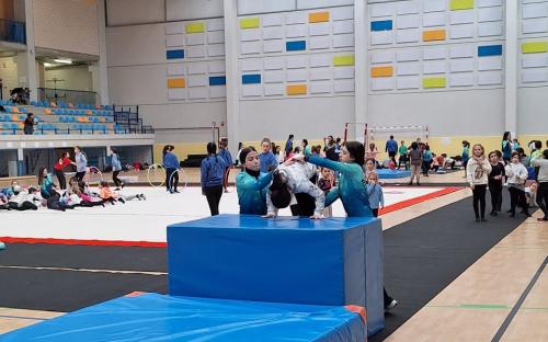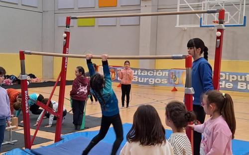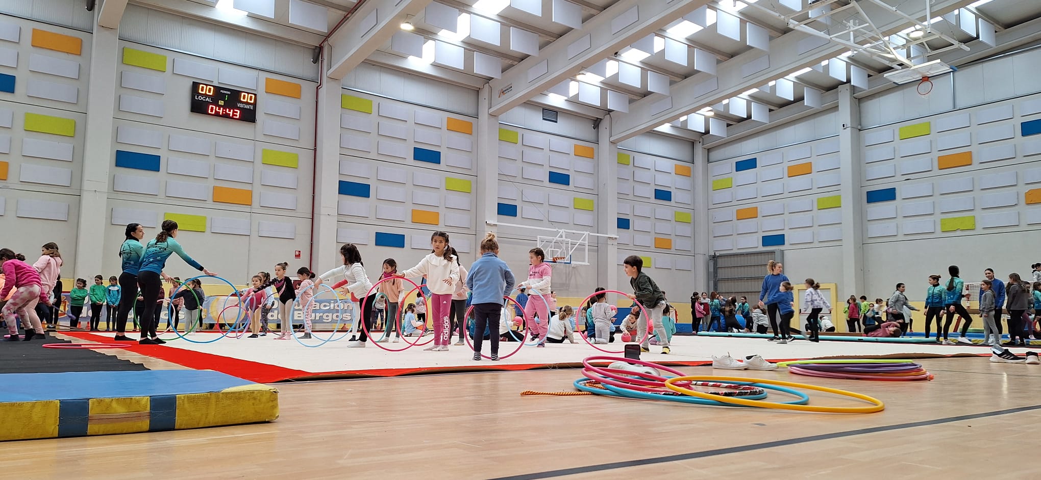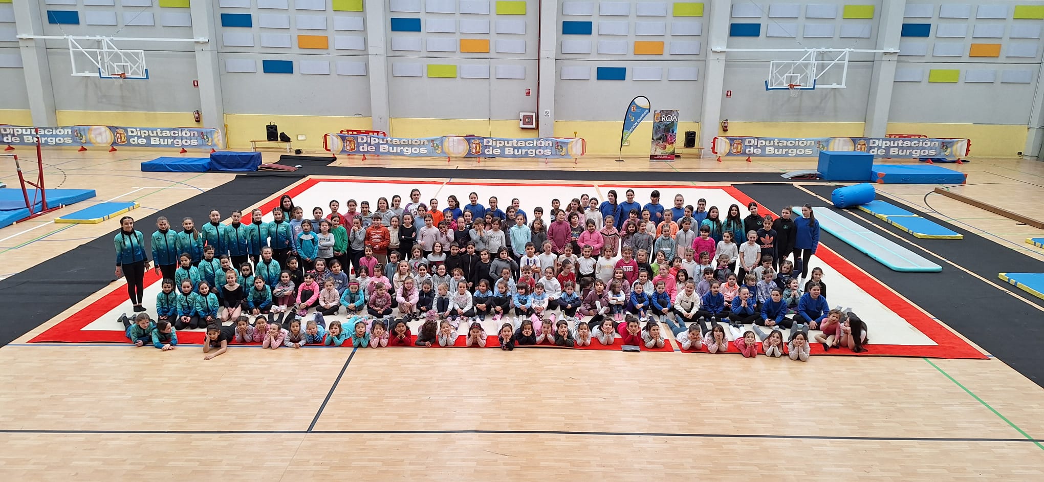 190 escolares de entre 4 y 14 años de la provincia de Burgos se reunieron el pasado sábado 15 de febrero de 2025 en la localidad de Roa de Duero para poner en práctica sus habilidades en Gimnasia.