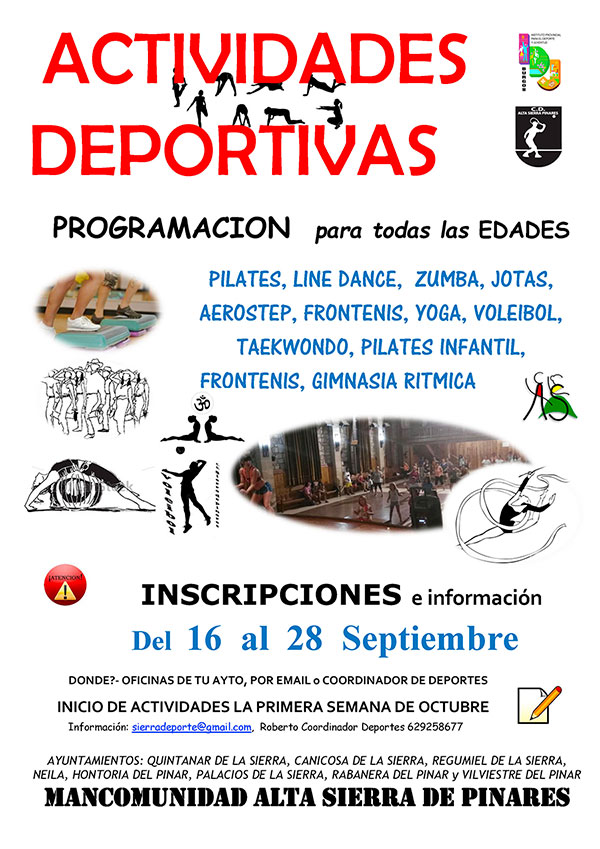 Más información en las oficinas de los diferentes Ayuntamientos, por e-mail a sierradeporte@gmail.com o al coordinador deportivo.