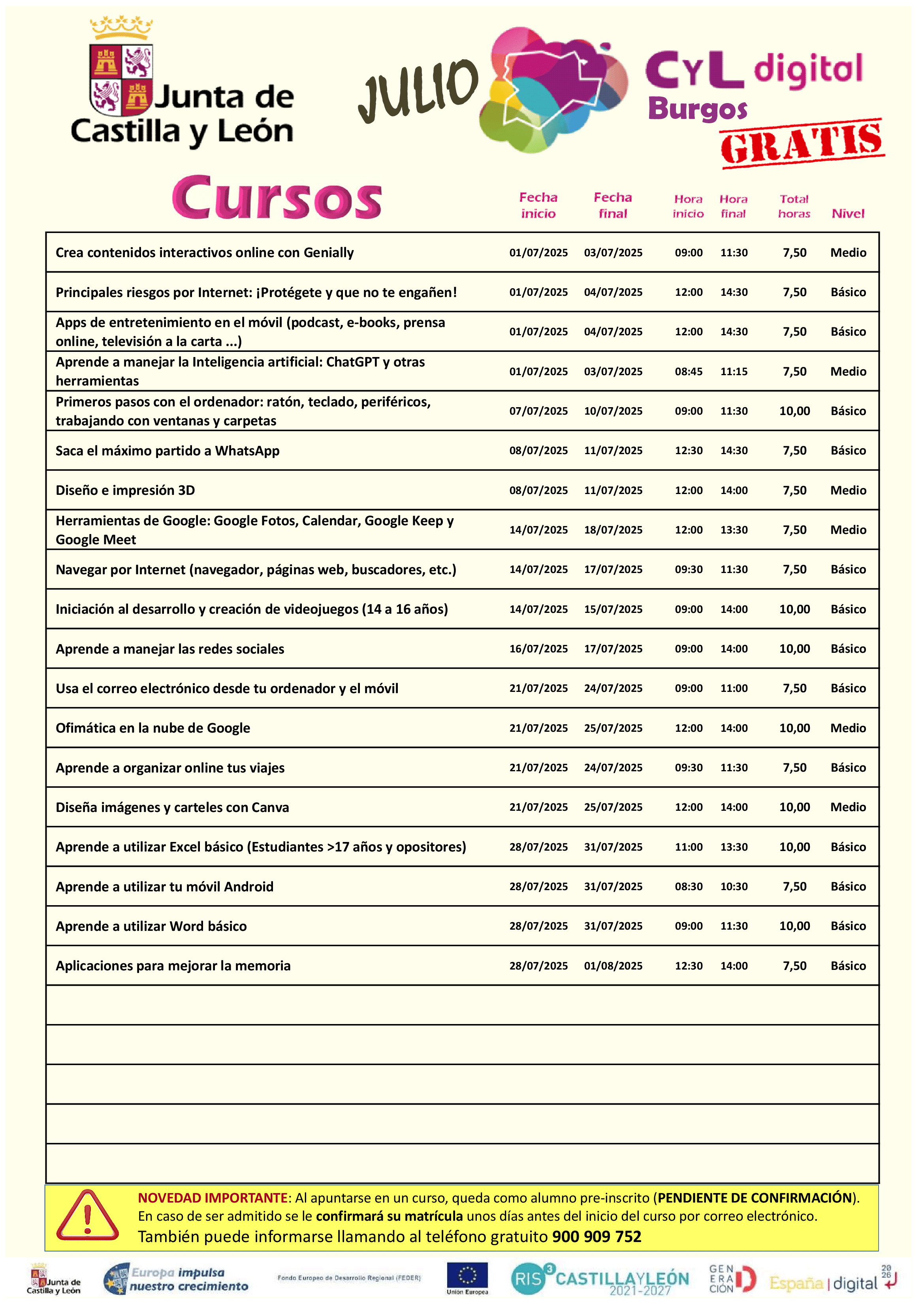 Para más información e inscripciones, selecciona Burgos el apartado de formación presencial en la web de CyL Digital que encontrarás en el siguiente enlace: "Formación presencial en la web de CyL Digital"