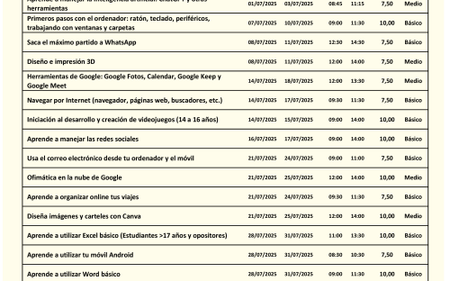 Estos cursos permiten adquirir nuevas competencias, desde informática básica hasta inteligencia artificial. Cada curso está impartido por expertos en la materia y cuenta con un enfoque práctico para aplicar lo aprendido de inmediato.