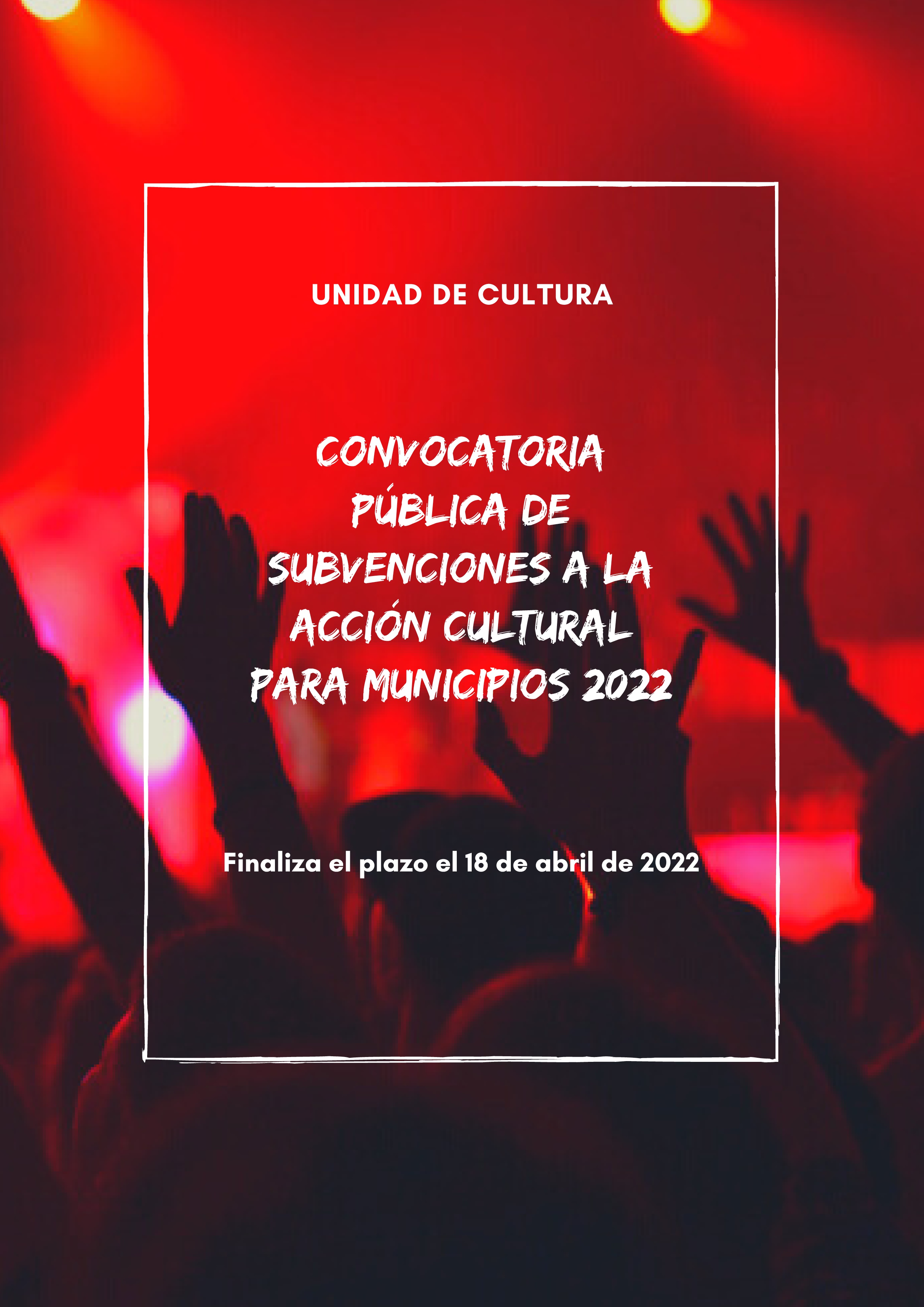 Con fecha 17 de marzo de 2022 se publica en el Boletín Oficial de la Provincia la Convocatoria pública de subvenciones a la Acción Cultural para Municipios 2022.