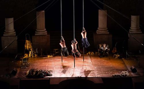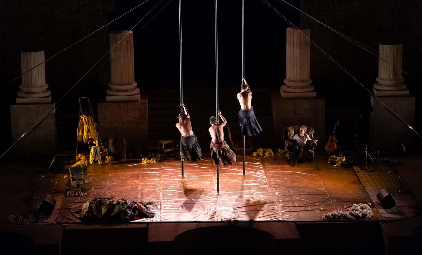 La compañía Entre Nous, compuesta en esta ocasión por cuatro artistas, debido a la lesión de una de ellas durante los ensayos previos, contagiaron de magia, belleza y suspense a los espectadores del teatro romano de Clunia.