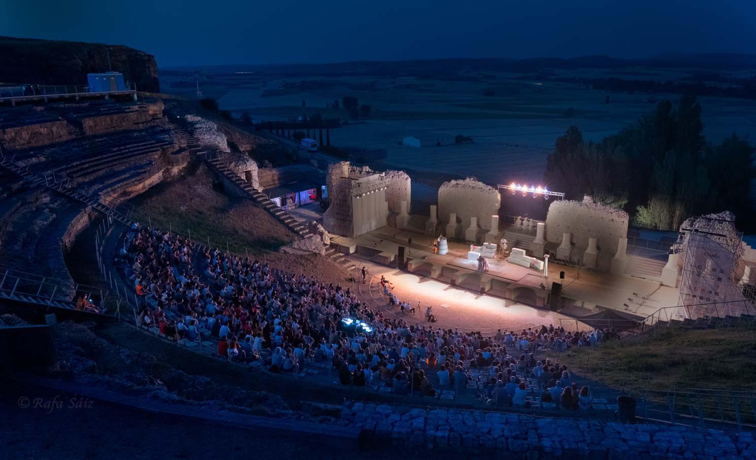 El recién restaurado Teatro Romano de Clunia, ha lucido todo su esplendor durante el primer fin de semana del Festival de Verano Clunia 2021. La decimocuarta edición del Festival comenzó este fin de semana a pesar del aforo reducido, la distancia de seguridad y el uso de gel y mascarilla, con lleno total de espectadores en las gradas del teatro romano, que disfrutaron de unas cálidas noches de verano durante las tres primeras actuaciones programadas.