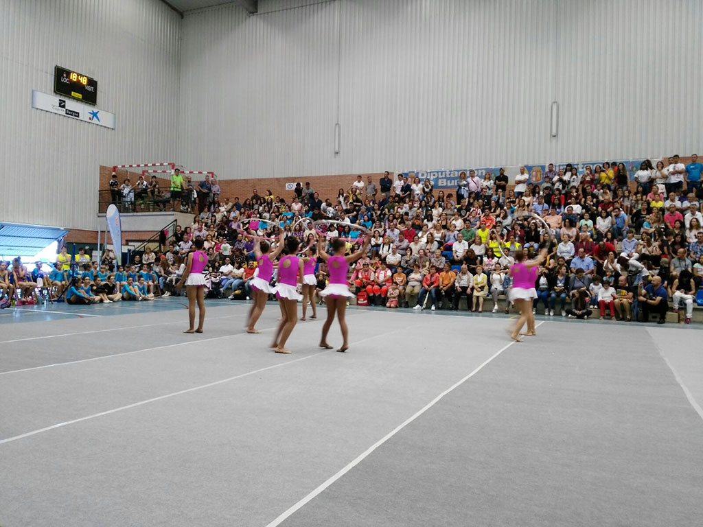 Las 165 gimnastas de Salas, Melgar, Briviesca, Roa, Aranda, Lerma, Quintanar de la Sierra y del Club Gimnasia Burgos expusieron sobre el tapiz el trabajo preparado durante el curso 2016/17 e hicieron disfrutar a un público que abarrotó el Polideportivo Municipal.