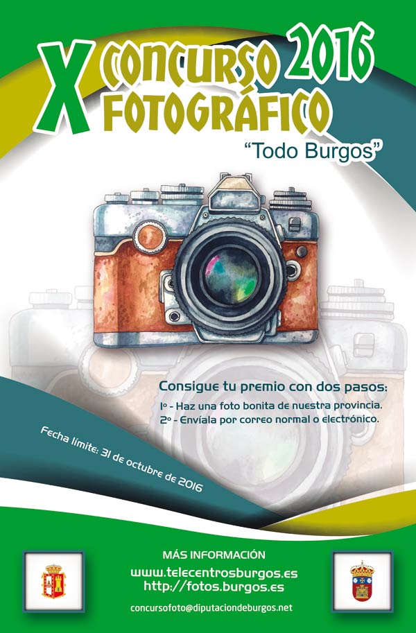 También tenemos disponible una nueva edición para el presente año que lleva por nombre X Concurso Fotográfico “Todo Burgos”. Las bases están disponibles en www.telecentrosburgos.es y en fotos.burgos.es. Y cuenta con 5 atractivos premios relacionados con la fotografía y las nuevas tecnologías. Entre todos los participantes no premiados, se sortearán tres tablets.