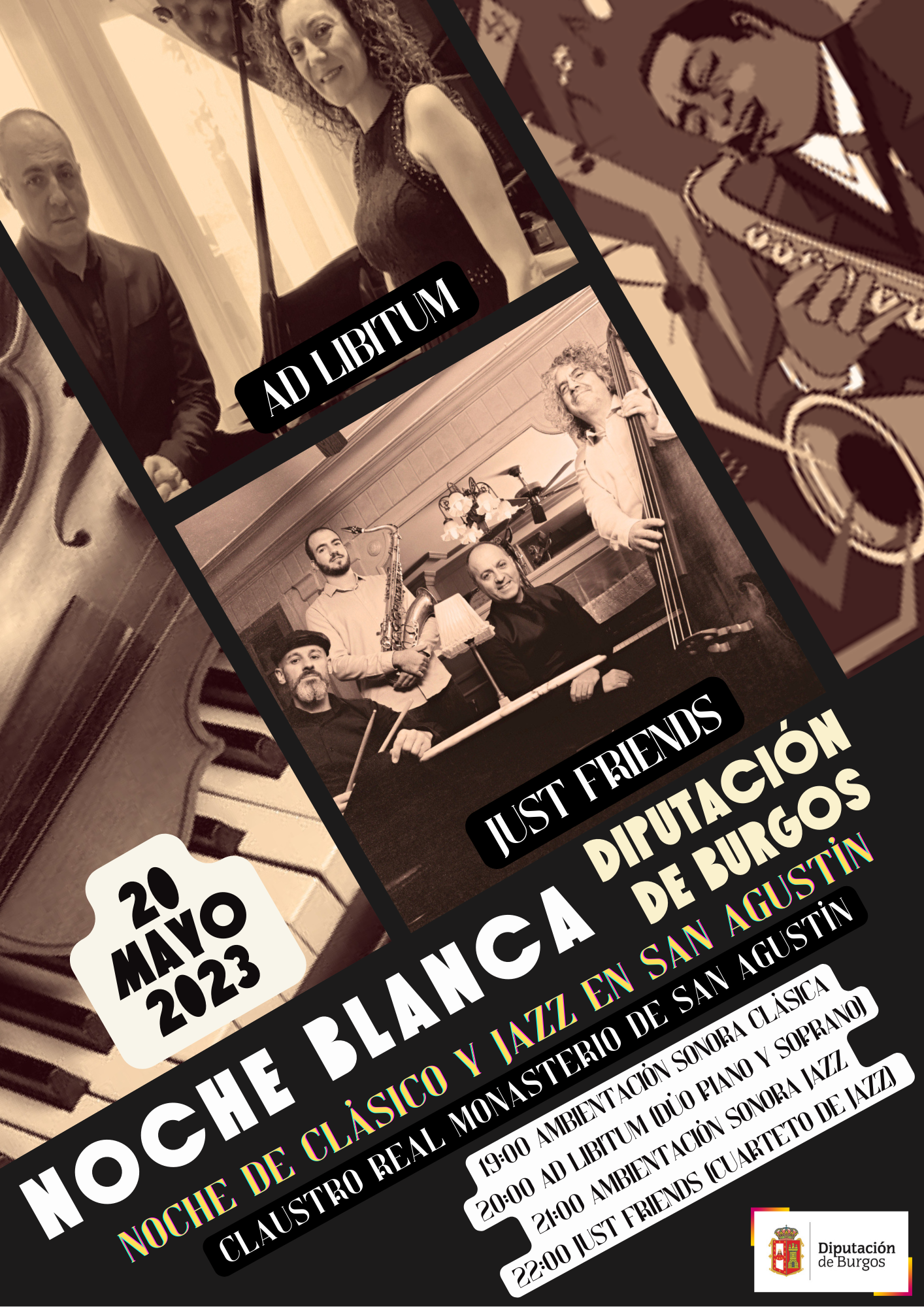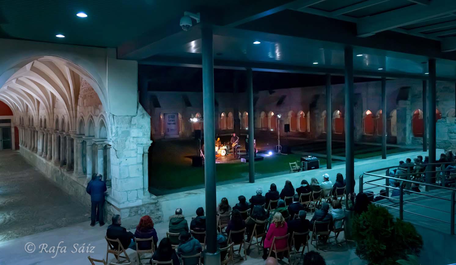 La gente que se acercó hasta el Monasterio de San Agustín pudo pasear por su claustro lleno de historia mientras disfrutaba de la música interpretada por del dúo AD LIBITUM (piano y soprano), y posteriormente el cuartero de jazz, JUST FRIENDS.