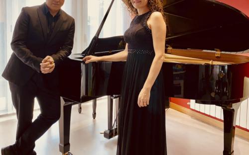 Está acompañada al piano por Rodrigo Vázquez, músico, profesor de Educación Musical y licenciado en Musicología.