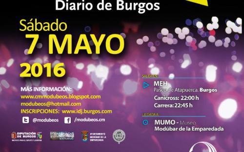 La V Nocturna de Modúbar - Diario de Burgos se celebrará el próximo sábado, 7 de mayo, a partir de las 22,00 horas, sobre las tres disciplinas habituales: Carrera a pie, senderismo y canicross. La salida tendrá lugar en el Paseo de la Sierra de Atapuerca, frente al Fórum Evolución de Burgos capital y la llegada esperará a los participantes en el MUMO - Museo de Modúbar.
