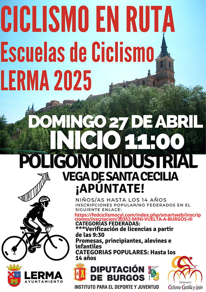 El próximo domingo 27 de abril, Lerma será el escenario de la Mini Vuelta a Burgos, sexta prueba puntuable del XXXIX Circuito Provincial de Escuelas de Ciclismo Federadas, una cita que reunirá a jóvenes promesas del ciclismo de distintas provincias de Castilla y León.