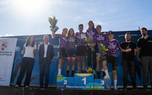En la competición femenina élite, que cubrió cinco vueltas, Marta Beti demostró una gran gestión de la carrera. Tras un inicio donde la cabeza de carrera se mantuvo muy compacta, la cántabra supo recuperarse de un error y emplear una estrategia calculada antes de lanzar su ataque decisivo para llevarse la victoria en Medina de Pomar y vestir el maillot morado de líder en la carrera de mañana.