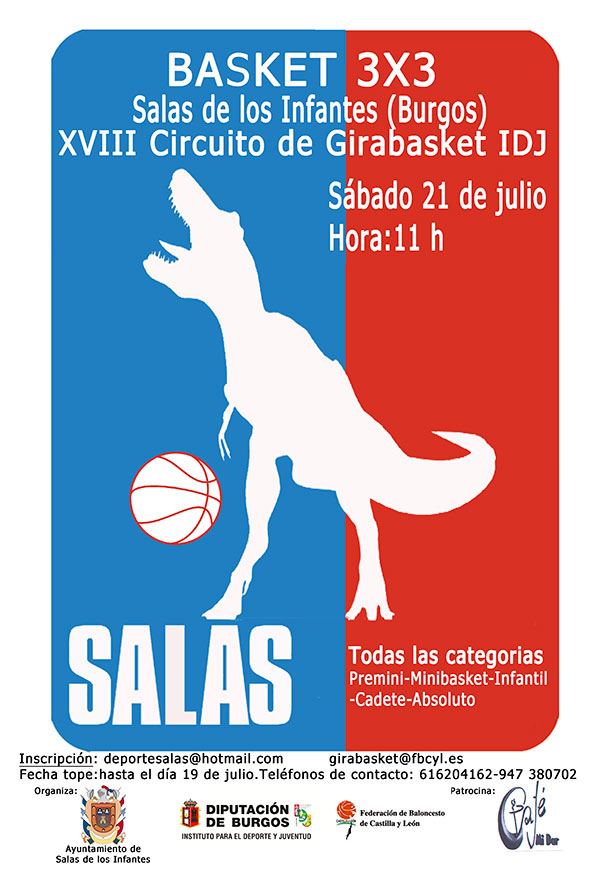 Llega el Girabasket a Salas de los Infantes el 21 de julio a partir de las 11:00 horas, a través de su XVIII torneo de Baloncestoe 3x3, prueba incluida en el Circuito Provincial, organizado por el Instituto Provincial para el Deporte y Juventud y la Federación de Baloncesto de Castilla y León: