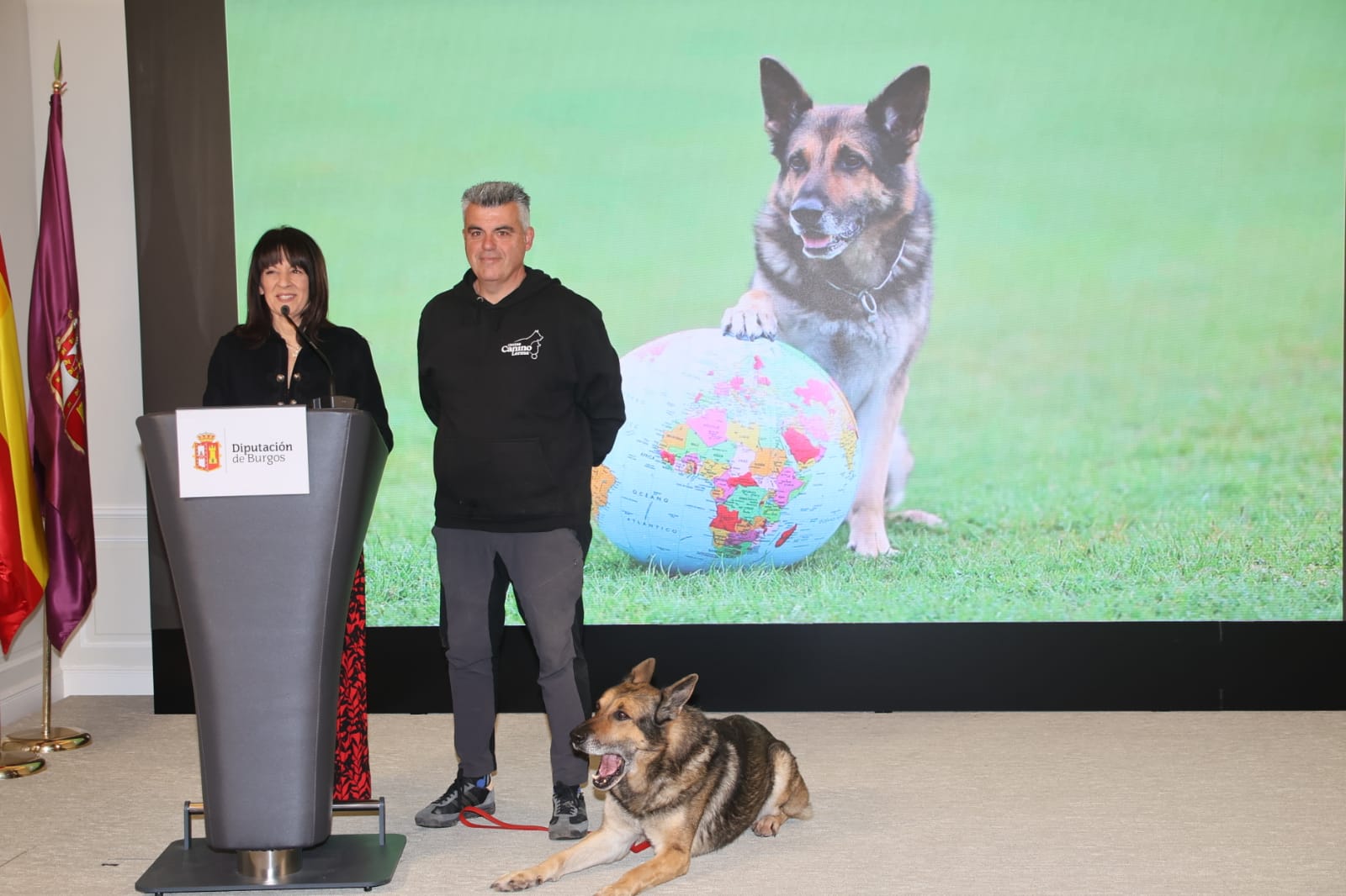 La presentación se ha llevado a cabo esta mañana en la Sala de Comisiones de la Diputación de Burgos y a la misma han asistido Inmaculada Sierra Vecilla, Portavoz de la Diputación de Burgos, Alberto Martínez González, instructor formador de adiestradores del club CEPPA y Director del Centro Canino Lerma y Astor (pastor alemán).