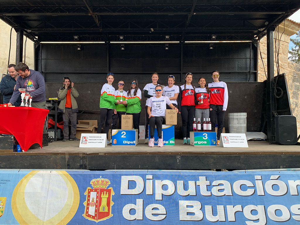 El título femenino ha correspondido a CD Triatlón Laguna de Duero Femenino A (Judit Nunes, Irene Redondo y Manuela Moneo) (01:03:23), al segundo cajón del pódium se ha subido el segoviano Triatlón Lacerta (Mara Prieto, Nora Arribas y Lucía de Miguel) (01:05:37) y E-Triatlón Valladolid A (María José Enjuto, Beatriz Arruzo y Paula Brezmes) (01:06:45) ha completado la terna ganadora.