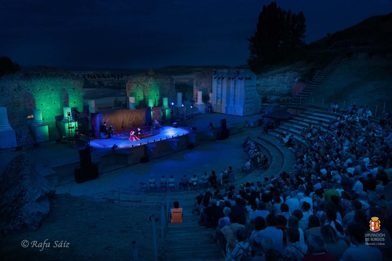 En la segunda jornada del Festival de Verano Clunia 2024, la compañía Factoría Teatro, representó una obra inédita de Lope de Vega, “El Marqués de las Navas”. El público asistente, que llenó las gradas del teatro romano de Clunia, disfrutó de una comedia de enredos, amores cortesanos, despechos amorosos y celos, duelos de espadas, muertos y espectros; todo a través de personajes y episodios reales de la vida de la corte de Felipe II.