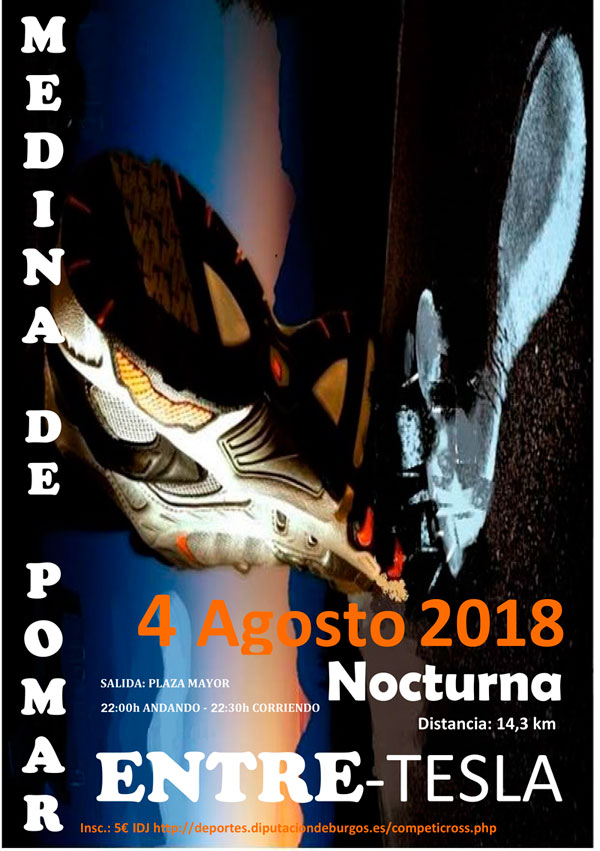 El Instituto Provincial para el Deporte y Juventud de la Diputación de Burgos y el Ayuntamiento de Medina de Pomar, en colaboración con el Club Entretesla, Medina Runing y 4X4 Merindades, organizan el día 4 de agosto a partir de las 22:00 horas, la VI Marcha Nocturna ENTRE TESLA. El carácter de esta prueba es lúdico y pretende una participación de todos los sectores y edades de la sociedad.