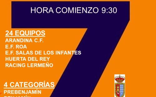 Organizado por el Instituto Provincial para el Deporte y Juventud de Burgos, el Ayuntamiento de Roa y la Delegación Provincial de Fútbol de Burgos, este torneo contará con la participación de 24 equipos de los siguientes Clubs y Escuelas Deportivas: Arandina C.F., Escuela de Fútbol de Roa, Escuela Municipal de Fútbol Dinosaurios Salas, Huerta del Rey y Racing Lermeño.