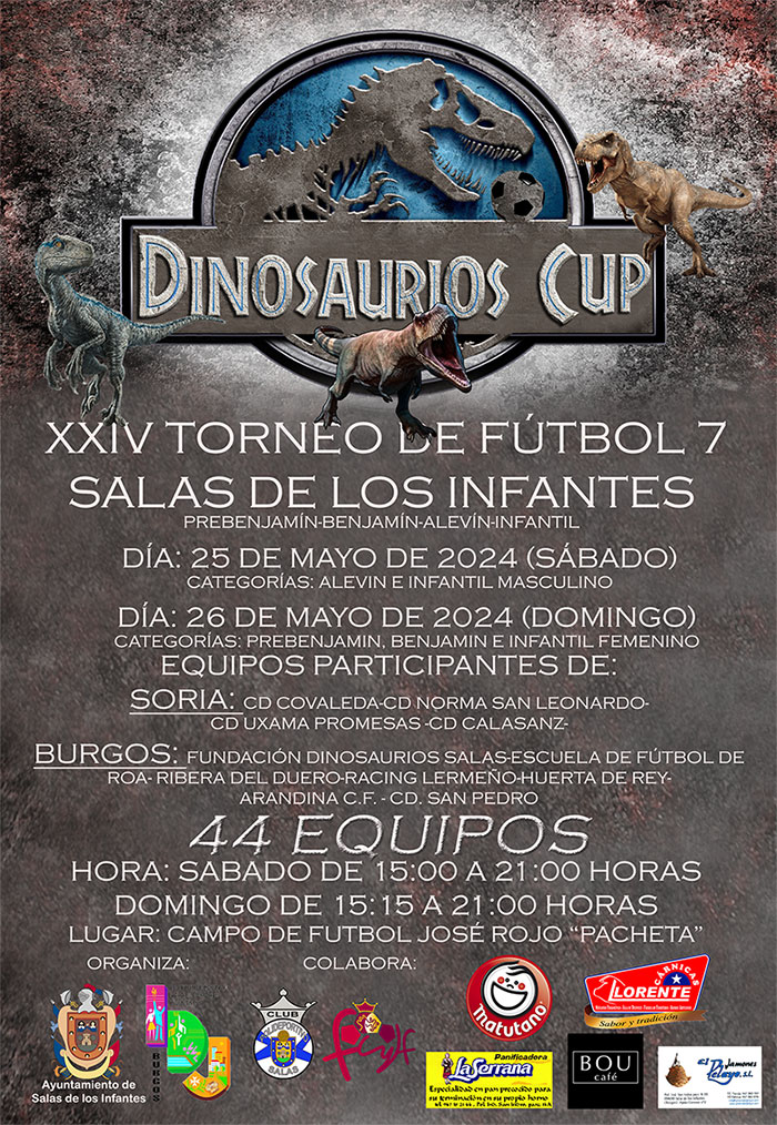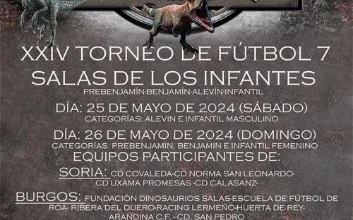 El Instituto Provincial para el Deporte y Juventud y el Ayuntamiento de Salas de los Infantes, con la colaboración de la Delegación Provincial de Fútbol y el C.P. Salas, organizan la XXIV "Dinosaurios Cup" de Fútbol 7 en Salas de los Infantes, los días 25 y 26 de mayo en el cual van a participar 44 equipos de la provincias de Burgos y Soria. La prueba forma parte del Circuito Provincial de Fútbol 7 dirigido a escolares.